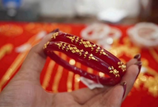 bridal gold shakha pola design
